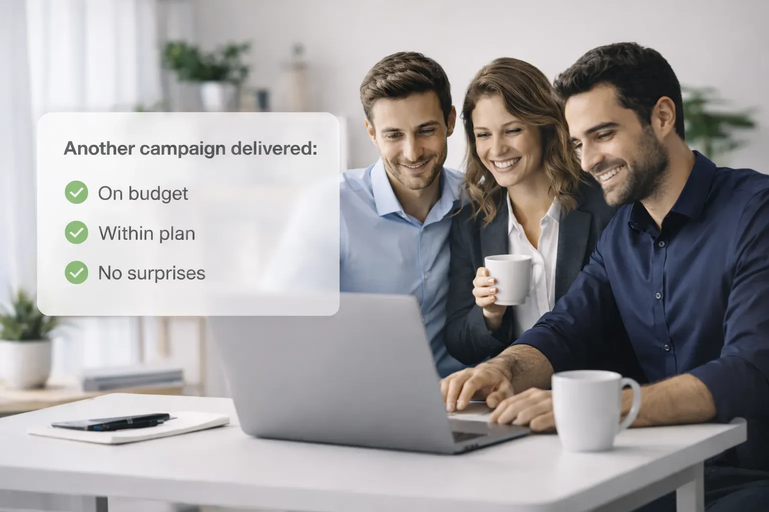 Manage high-volume campaigns, suppliers, and approvals with full visibility into budgets, commitments, and actual costs — and stay in control of cash flow as spend evolves.
